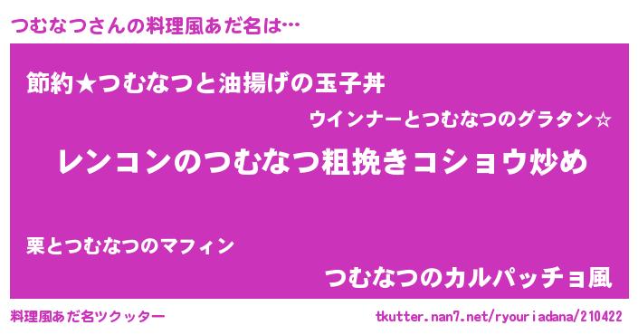 | 意味不明あだ名 | 『自称つむなつ』『ペロリンつむなつ』 |