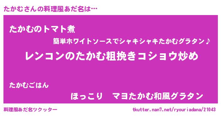 | 欧米人風あだ名 | 『ケンブリッジたかむ』『ダニエルたかむ』 |