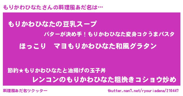 | 男性向けラノベタイトル風あだ名 | 『この素晴らしい世界にもりかわひなたを!』 |