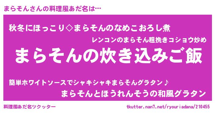 | 胡散臭い通販商品みたいなあだ名 | 『芸能人もオススメする高麗人参…その名も「まらそん」』 |