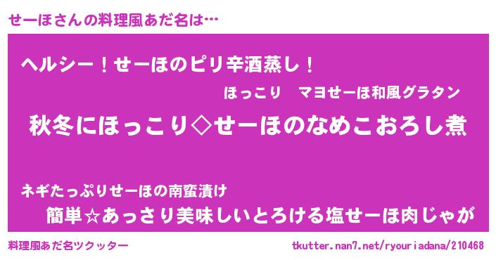 | ヘコむあだ名 | 『せーほ(苦笑)』『せーふぇ~』 |