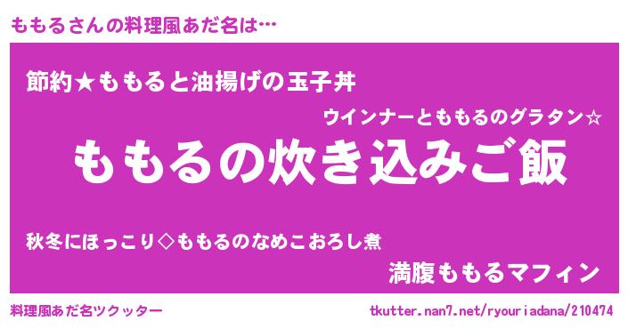 | ファンタジー風あだ名 | 『カークモモラー』『モモフェル』 |