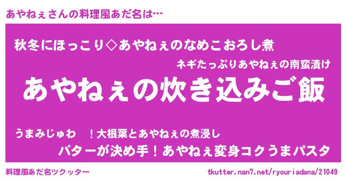 | ヘコむあだ名 | 『あやっふぃ~』『なまこ酢』 |