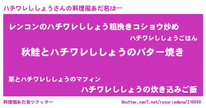 | ヘコむあだ名 | 『ハチワレししょう(笑)』『ハチにゅー』 |