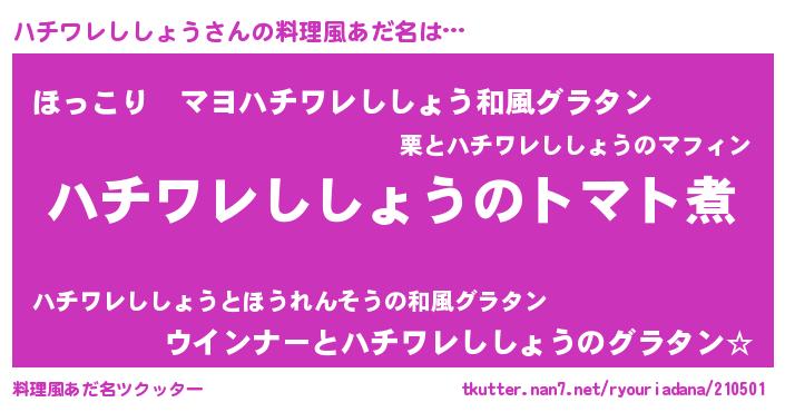 | 意味不明あだ名 | 『眠気覚ましガムハチワレししょう味』 |
