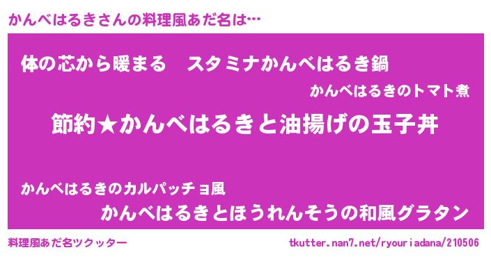 | 男性向けラノベタイトル風あだ名 | 『カンベハルキアートオンライン』 |
