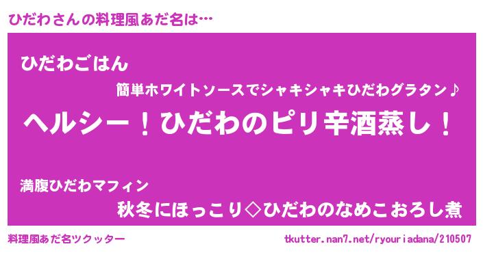 | 男性向けラノベタイトル風あだ名 | 『Re:ひだわから始める異世界生活』 |