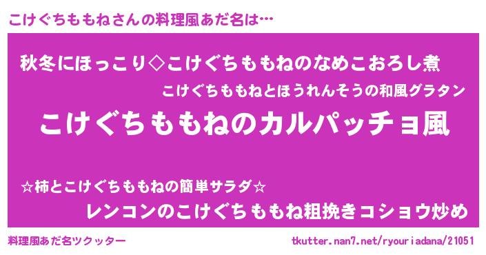 | 意味不明あだ名 | 『住所不定無職こけぐちももね(6歳)』 |