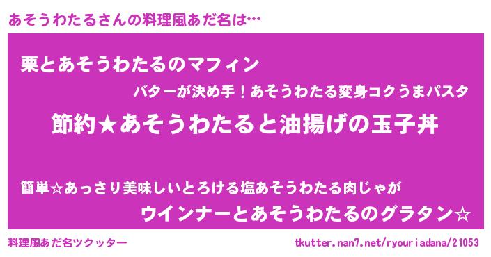 | 男性向けラノベタイトル風あだ名 | 『あそうわたるの憂鬱』 |