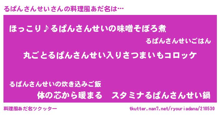 | ピコ太郎風あだ名 | 『ルコ六郎』『ピル五郎』『ルル太郎』 |
