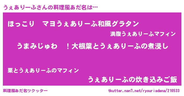 | 欧米人風あだ名 | 『うぇありーふクリステル』 |