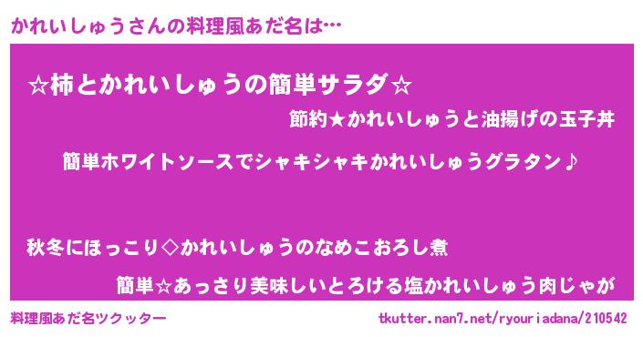 | ヘコむあだ名 | 『かれを』『かれいしゅう(笑)』 |