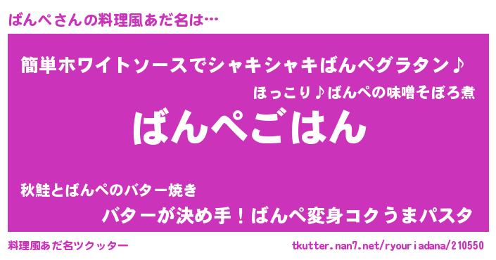 | 胡散臭い通販商品みたいなあだ名 | 『信頼と実績のサプリメント…その名も「ばんぺ」』 |
