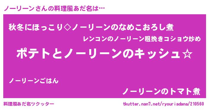 | 女子向けラノベタイトル風あだ名 | 『ノーリーンの卵を拾いまして』 |