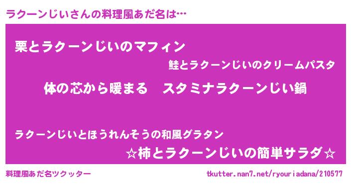 | 意味不明あだ名 | 『ラクーンじいフォーエバー』 |
