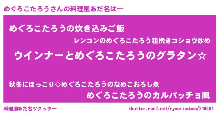 | 意味不明あだ名 | 『めぐろこたろうフォーエバー』 |