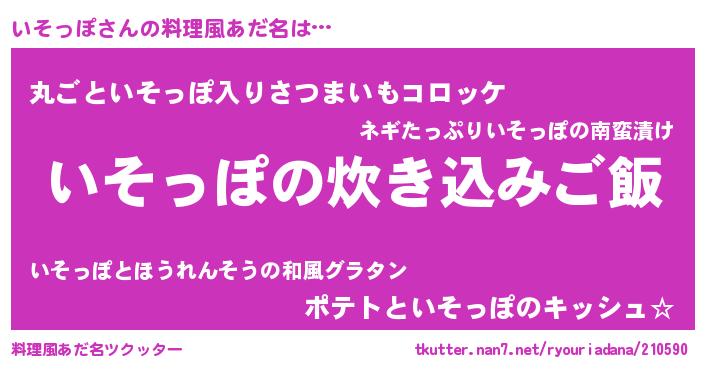 | 意味不明あだ名 | 『住所不定無職いそっぽ(4歳)』 |