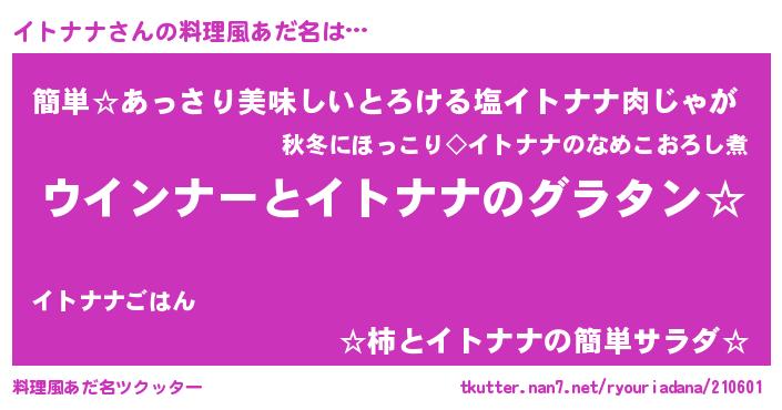 | 意味不明あだ名 | 『イトナナフォーエバー』『自称イトナナ』 |