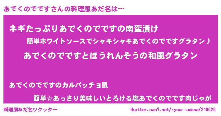 | 欧米人風あだ名 | 『トリンドルあでくのでです』 |