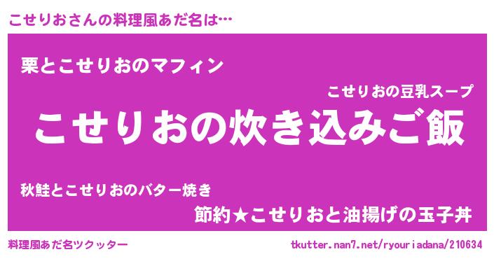 | 意味不明あだ名 | 『ペロリンこせりお』『永久保存こせりお』 |