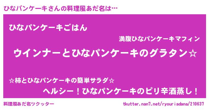 | 欧米人風あだ名 | 『ひなパンケーキクリステル』 |