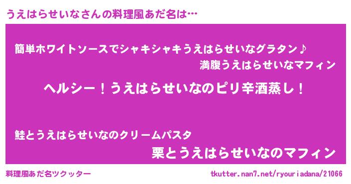 | ヘコむあだ名 | 『うえ太郎』『うえはらせいな(笑)』 |