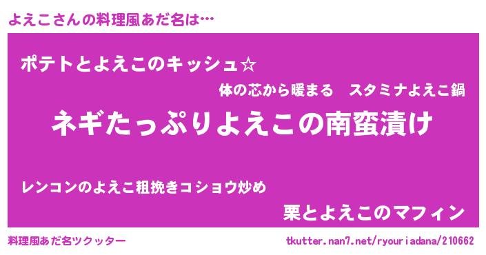 | 意味不明あだ名 | 『ペロリンよえこ』『よえこフォーエバー』 |