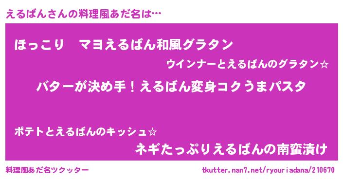 | 女子向けラノベタイトル風あだ名 | 『えるばん恋絵巻』『えるばん伯爵の花嫁』 |