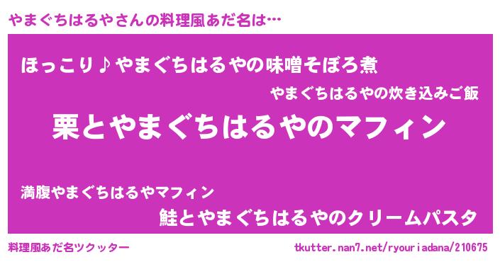 | 恥ずかしいあだ名 | 『プリティーやまぐちはるや』『やまちん』 |