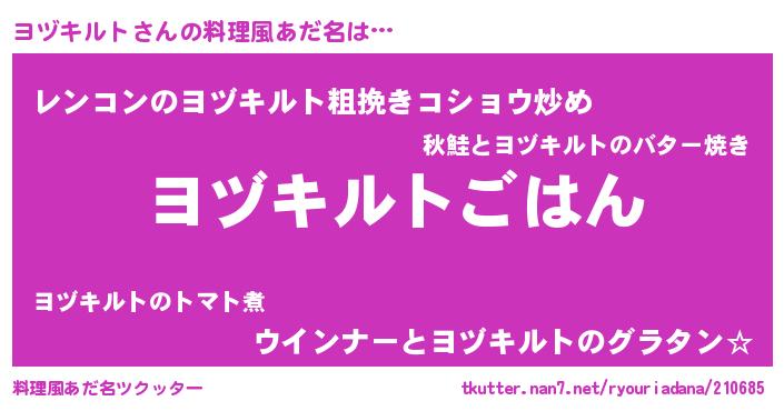 | 胡散臭い通販商品みたいなあだ名 | 『ガンによく効くアガリクス…その名も「ヨヅキルト」』 |