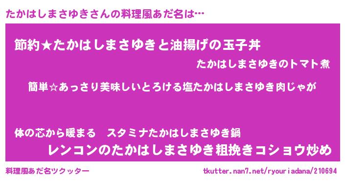 | ヘコむあだ名 | 『たかはしまさゆき(爆)』『たかふぇ~』 |