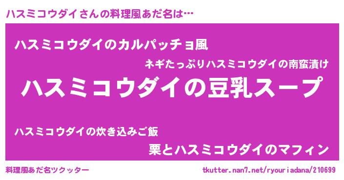 | ピコ太郎風あだ名 | 『ハス四郎』『ハコ三郎』『ピハ一郎』 |