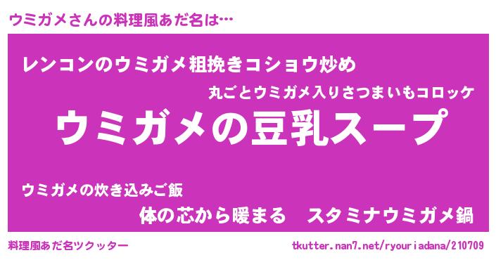 | 男性向けラノベタイトル風あだ名 | 『ダンジョンにウミガメを求めるのは間違っているだろうか』 |