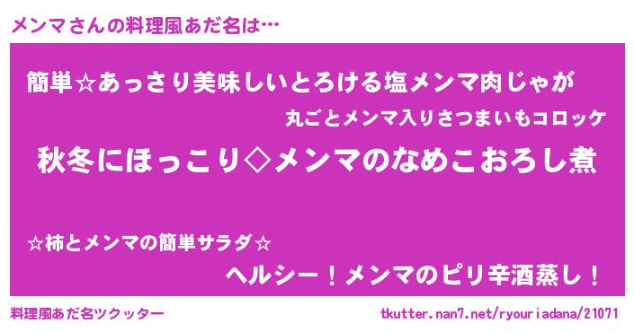 | ヘコむあだ名 | 『メンマ(笑)』『メンお』『豆乳』 |