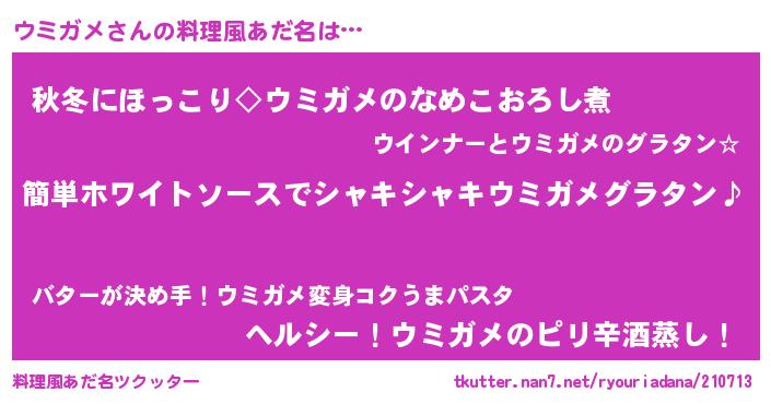 | 女子向けラノベタイトル風あだ名 | 『ウミガメ様がみてる』『ウミガメ恋絵巻』 |