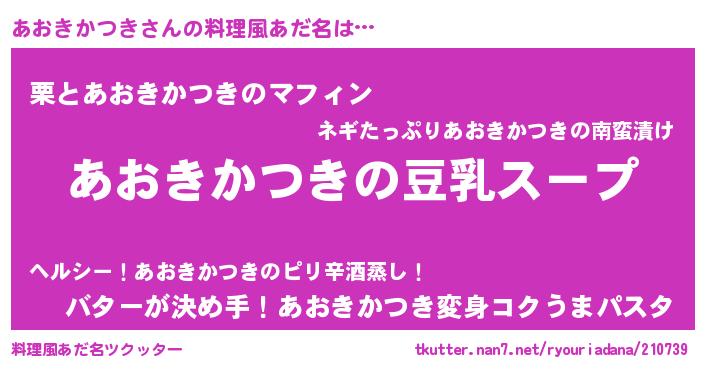 | 胡散臭い通販商品みたいなあだ名 | 『信頼と実績のサプリメント…その名も「あおきかつき」』 |