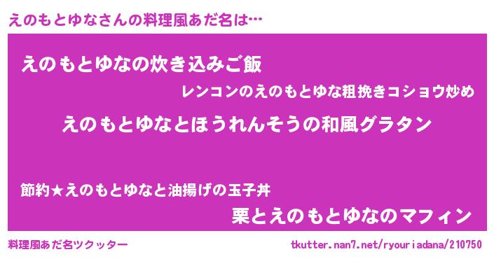 | 恥ずかしいあだ名 | 『エノモトユナデラックス』『えのっちょ』 |