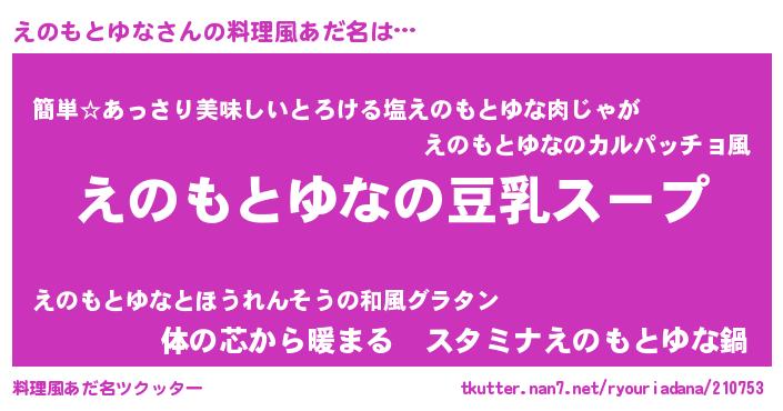 | ヘコむあだ名 | 『えのぷりん』『えのもとゆな(笑)』 |