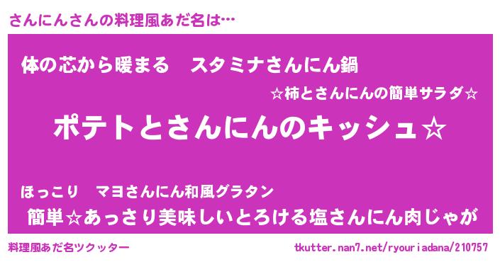 | ヘコむあだ名 | 『さんっぺ』『なまこ酢』『さんもー』 |