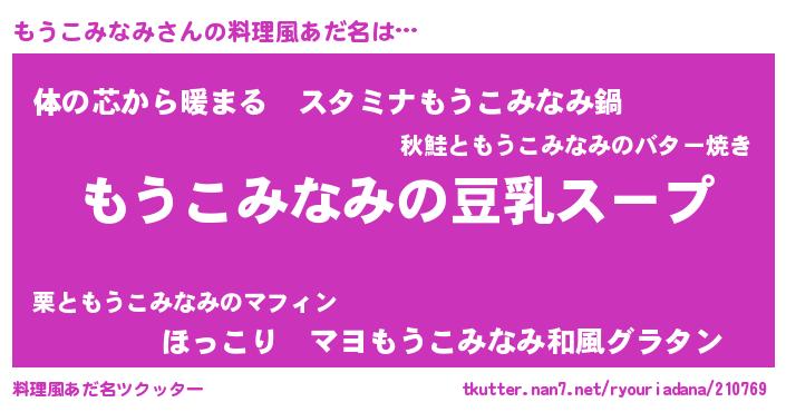 | 胡散臭い通販商品みたいなあだ名 | 『信頼と実績のサプリメント…その名も「もうこみなみ」』 |