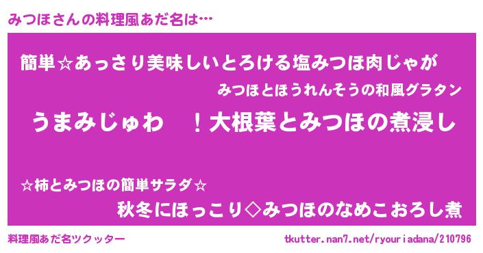 | ヘコむあだ名 | 『レバニラ』『みつほ(震え声)』 |