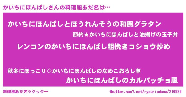 | 胡散臭い通販商品みたいなあだ名 | 『ガンによく効く高麗人参…その名も「かいちにほんばし」』 |