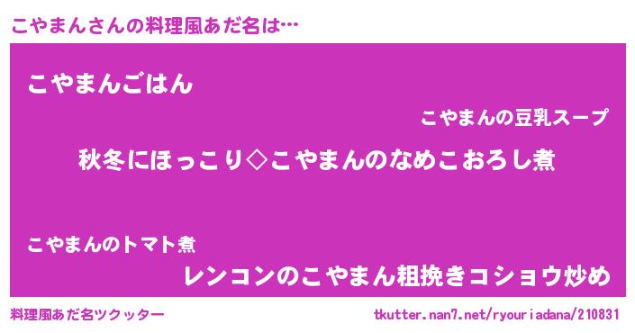 | 胡散臭い通販商品みたいなあだ名 | 『テレビで話題の高麗人参…その名も「こやまん」』 |