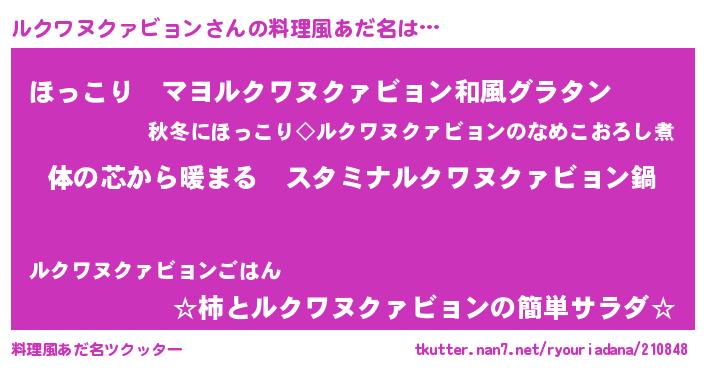 | 女子向けラノベタイトル風あだ名 | 『ルクワヌクァビョンの雑貨屋さん』 |