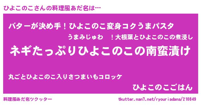 | ピコ太郎風あだ名 | 『ヒコ四郎』『ヒヒ太郎』『ピヒ十郎』 |