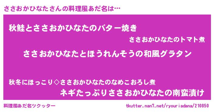 | ヘコむあだ名 | 『ささおかひなた(遠い目)』『ささっふぃ~』 |