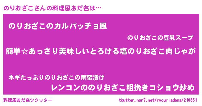 | 意味不明あだ名 | 『永久保存のりおざこ』『自称のりおざこ』 |