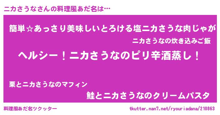 | 意味不明あだ名 | 『自称ニカさうな』『永久保存ニカさうな』 |