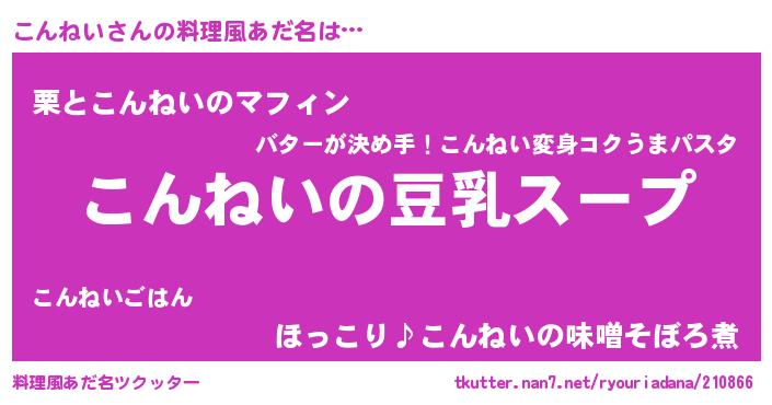 | 胡散臭い通販商品みたいなあだ名 | 『信頼と実績のサプリメント…その名も「こんねい」』 |