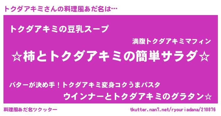 | ヒーロー風カッコイイあだ名 | 『暗黒騎士トク』『ネオトクダアキミ』 |